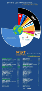 El gráfico que circula actualmente sobre acuerdos de Direct-to-Cell muestra que los operadores comprometidos con esta tecnología representan casi tres mil millones de suscriptores móviles en el mundo. Es decir, cerca de la mitad de los usuarios globales de telefonía.