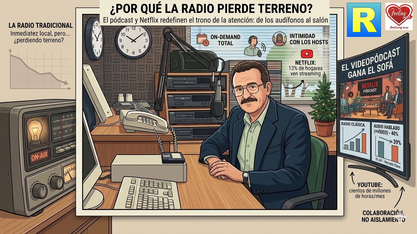 La radio tradicional todavía tiene fortalezas (inmediatez en noticias locales, compañía en vivo, alcance masivo en autos), pero para sobrevivir tendrá que evolucionar: más contenido digital, podcasts propios, integración con video y menos rigidez de horarios.En resumen: sí, cuando el podcast (y sobre todo el videopódcast) entra a Netflix, la radio clásica deja de ser el rey indiscutible del audio. El trono ahora se reparte entre plataformas que dominan tanto el oído como la vista.